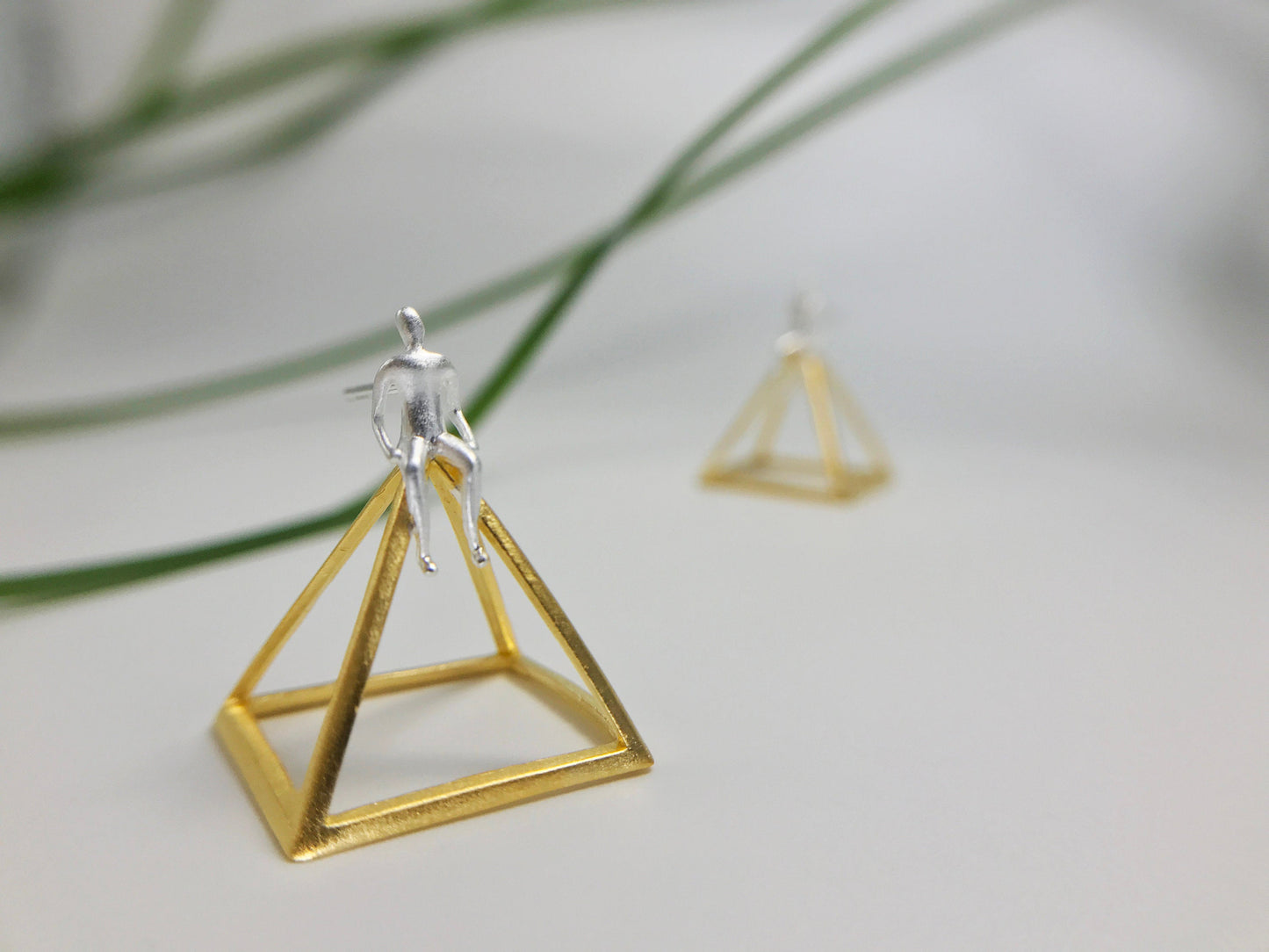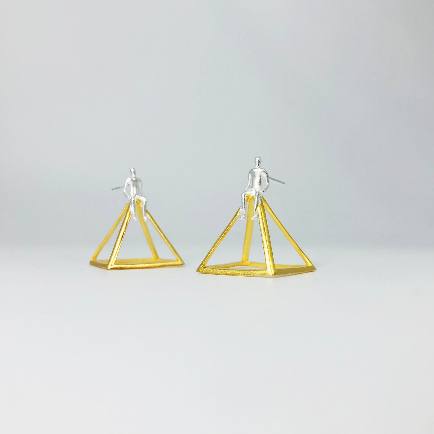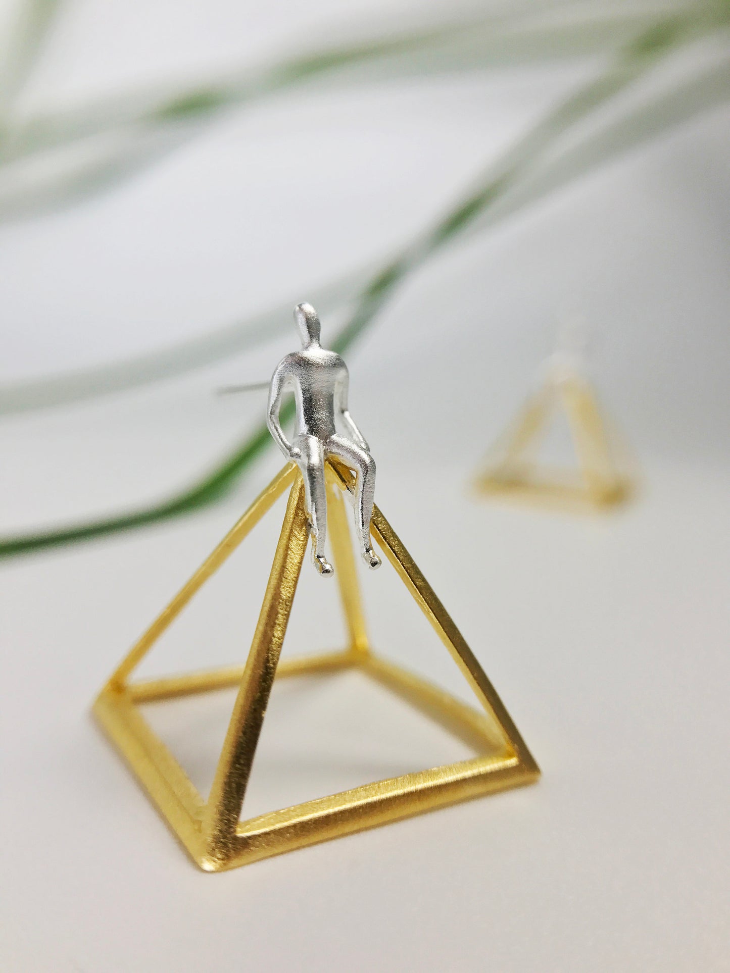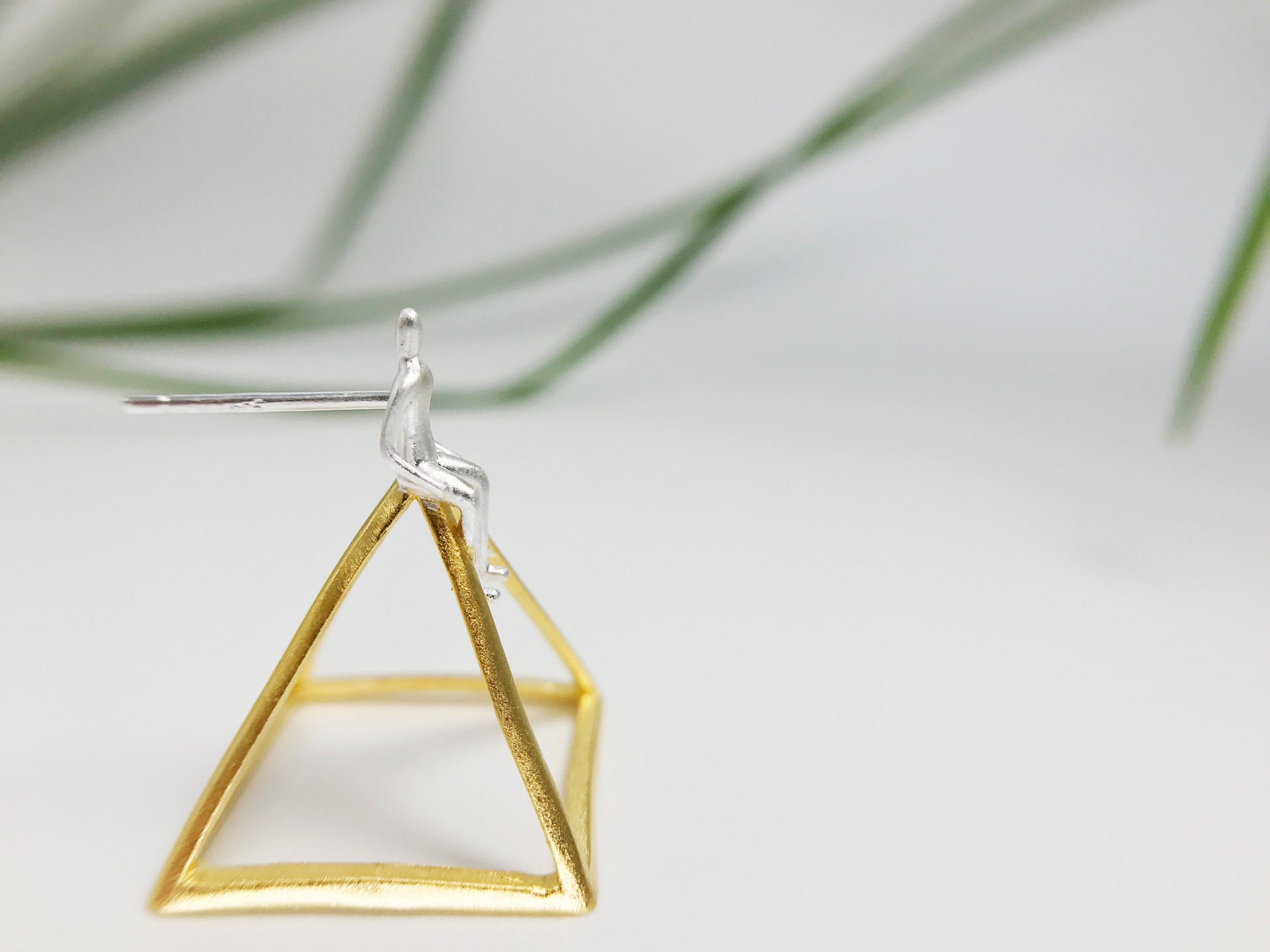 A silver man sits on a pyramid. This one is certainly unique, if not a little bit strange. However, who doesn't like something a little strange and different, especially when it comes to jewelry!