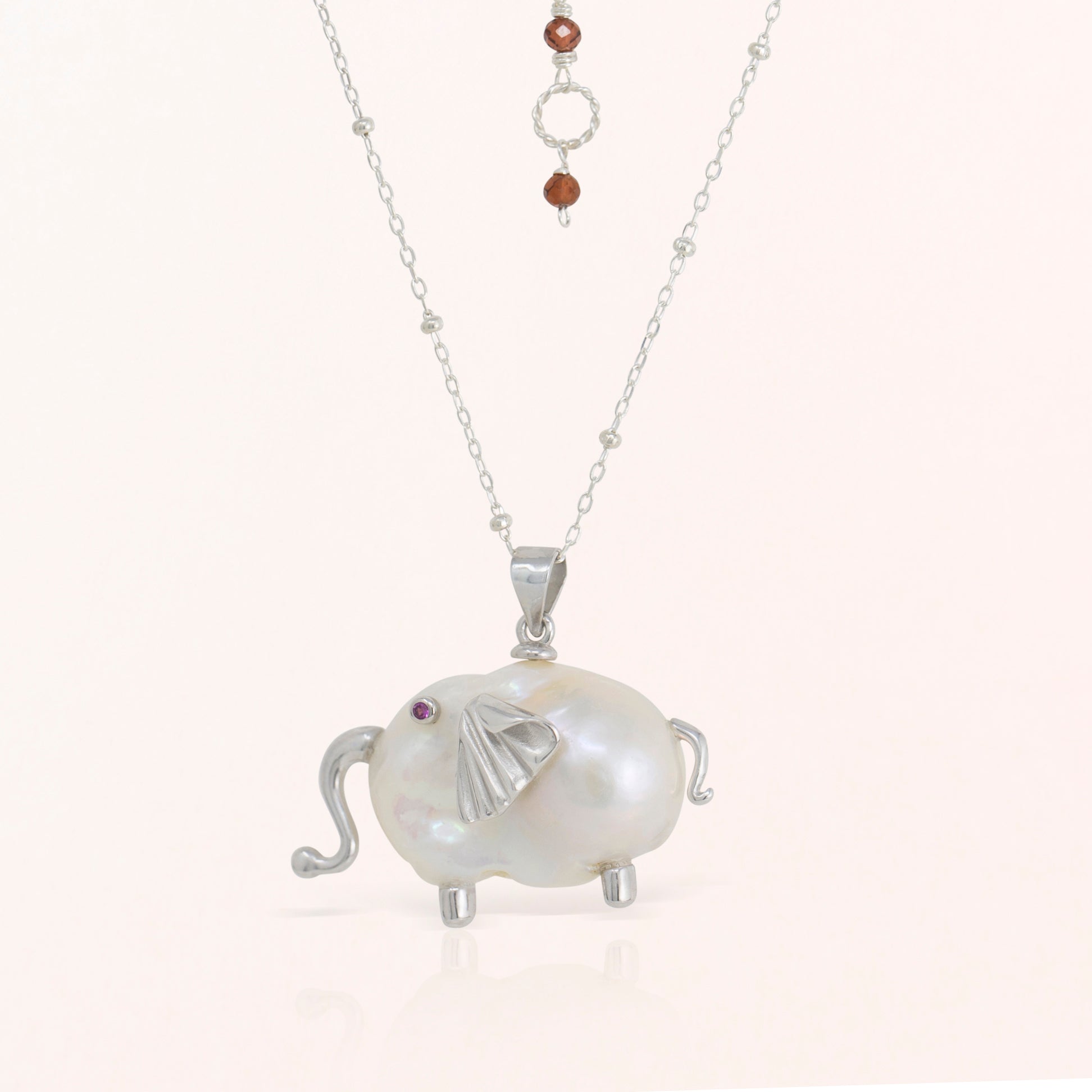 Have you ever seen animals in the clouds when you look up on a sunny day? I see animals and shapes when I look into the pearls that I love so much. Sterling silver or vermeil pieces have been attached to these pearls, with various gemstones to make these cute animal jewelry pieces.