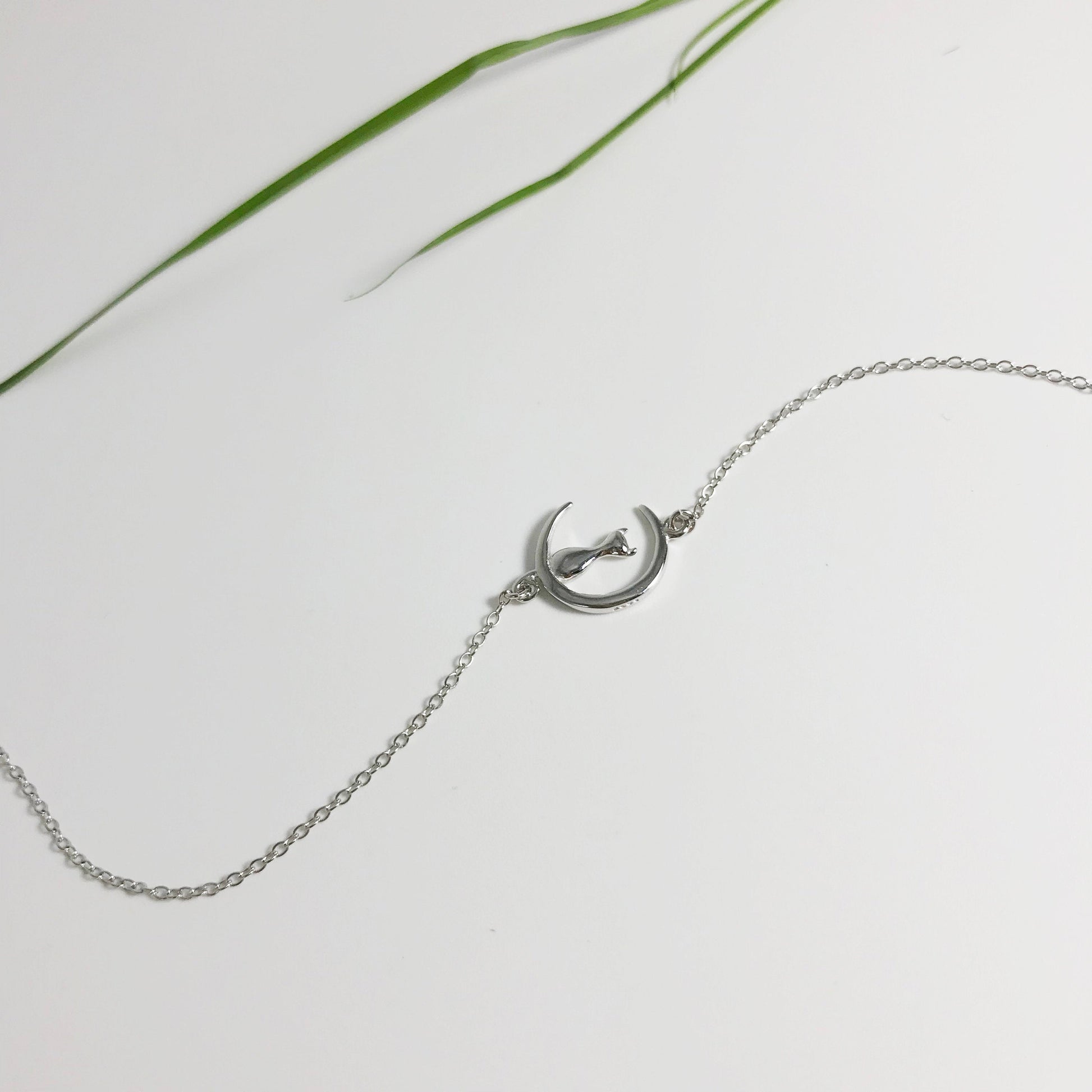 Another unique piece for cat lovers, these sterling silver earrings of a cat sitting on a crescent moon are sure to get anyone's attention, even if they are indifferent to cats...or the moon. Sterling silver adjustable chain.