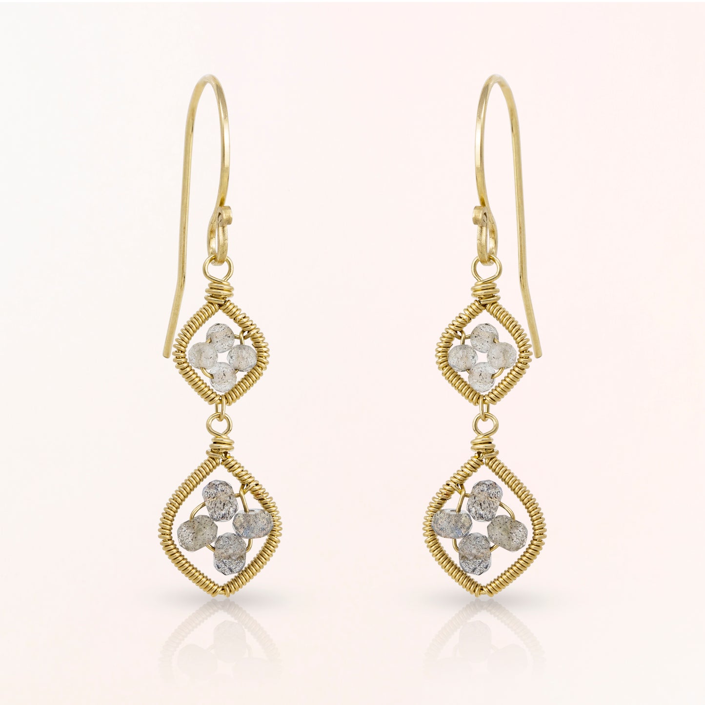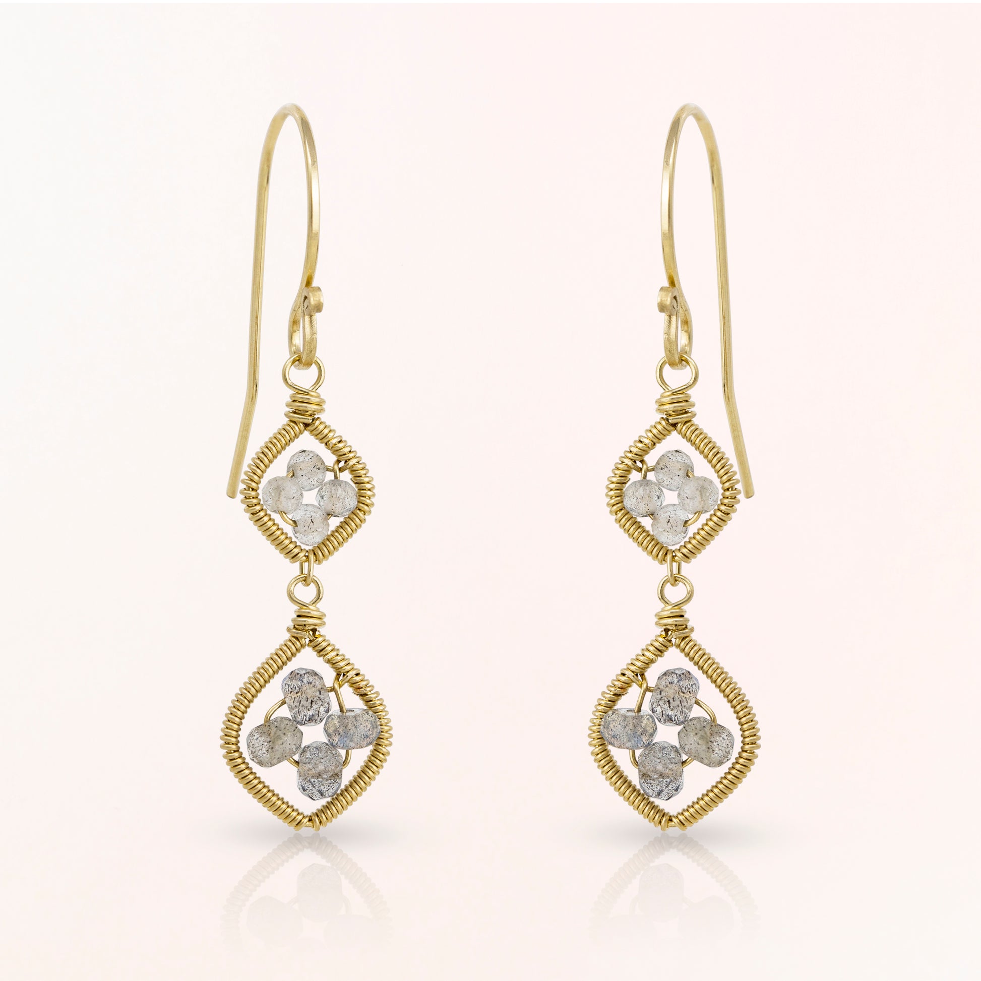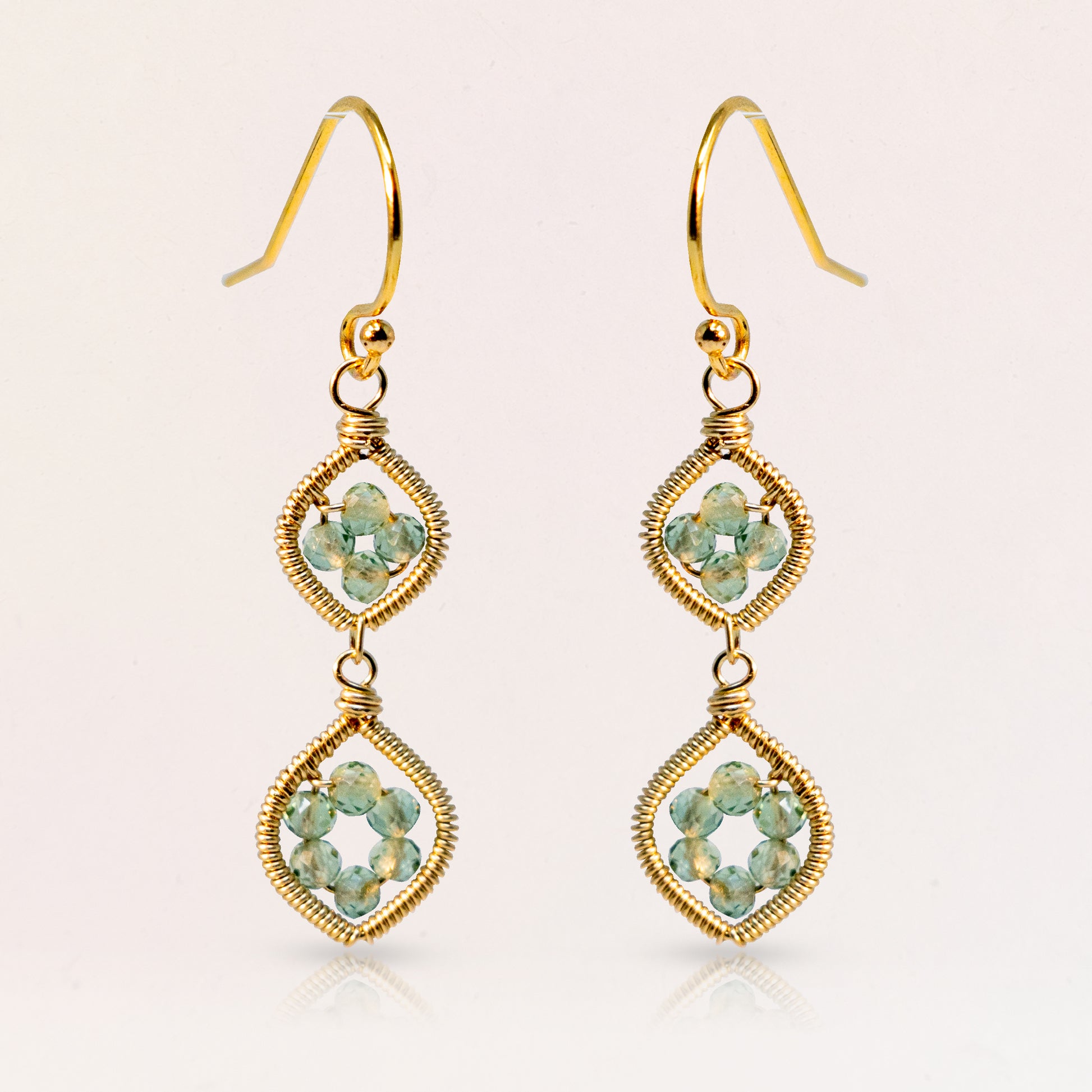 Handmade with 14k gold filled wire holds gemstones, these hoop double earrings are perfect for those who love unique simple jewelry. 1.1 inches long.