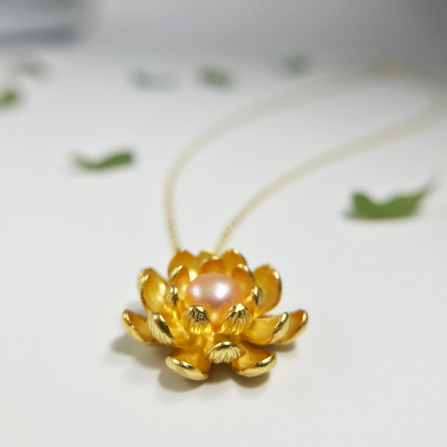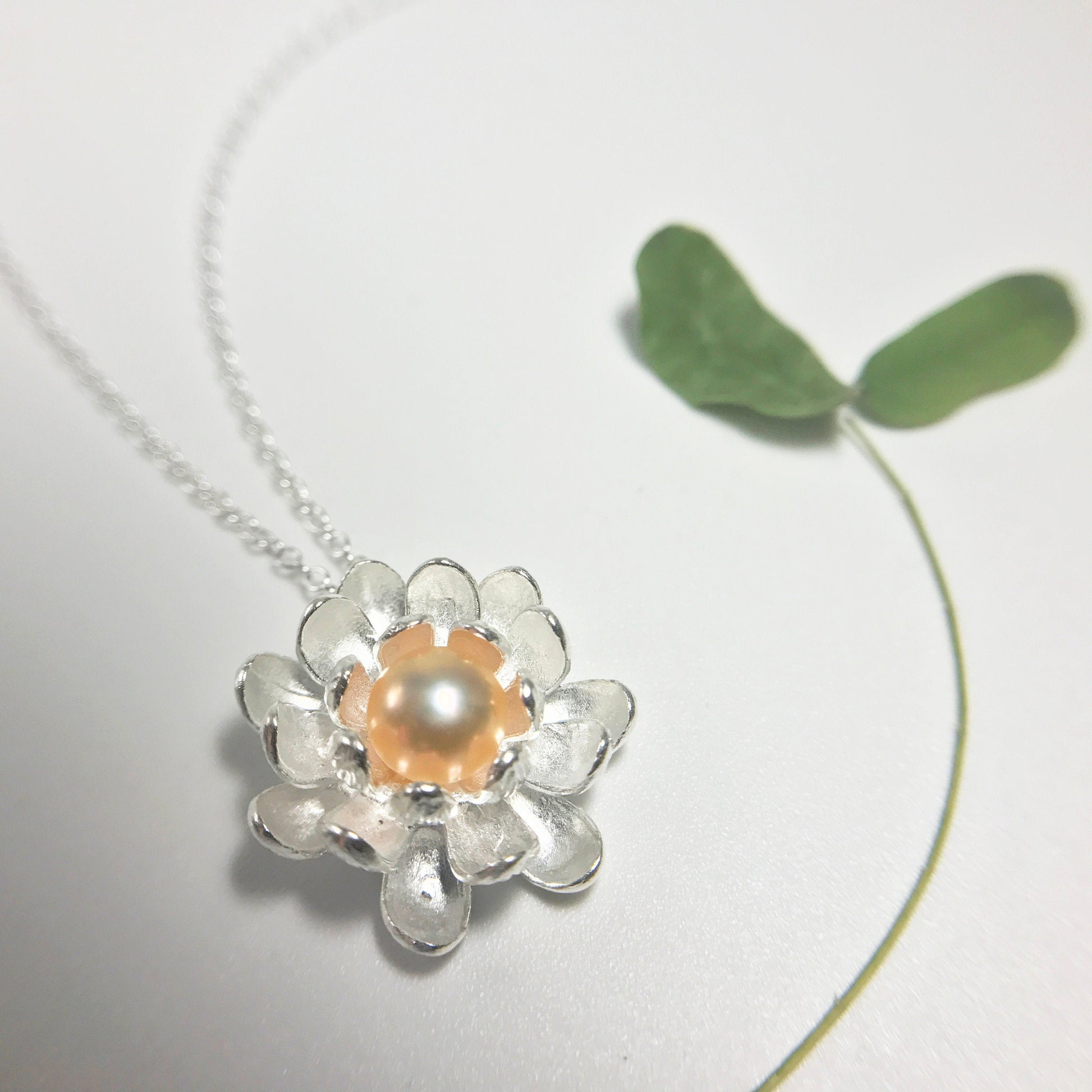 Lotus Pendant with Sterling Silver Pearl Necklace