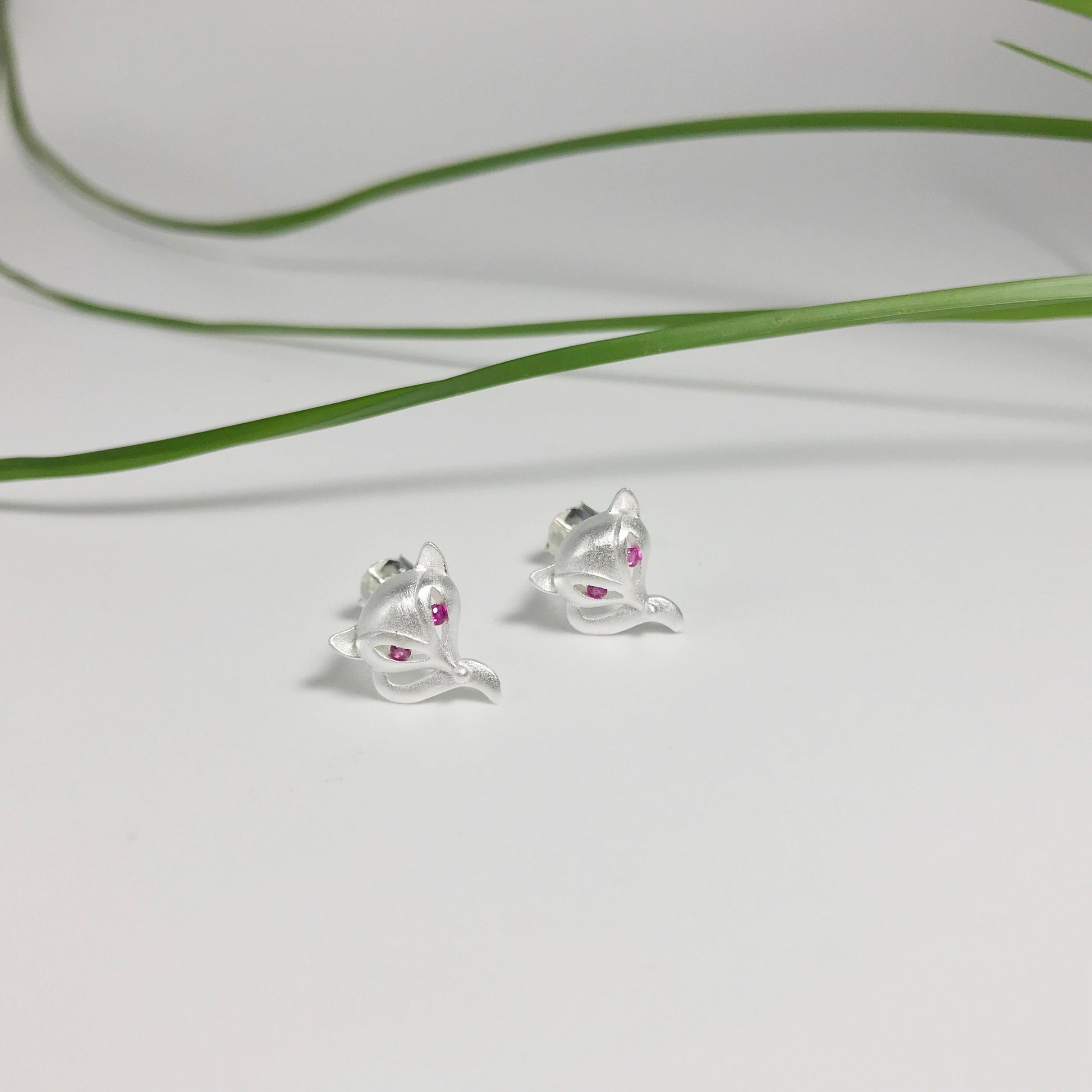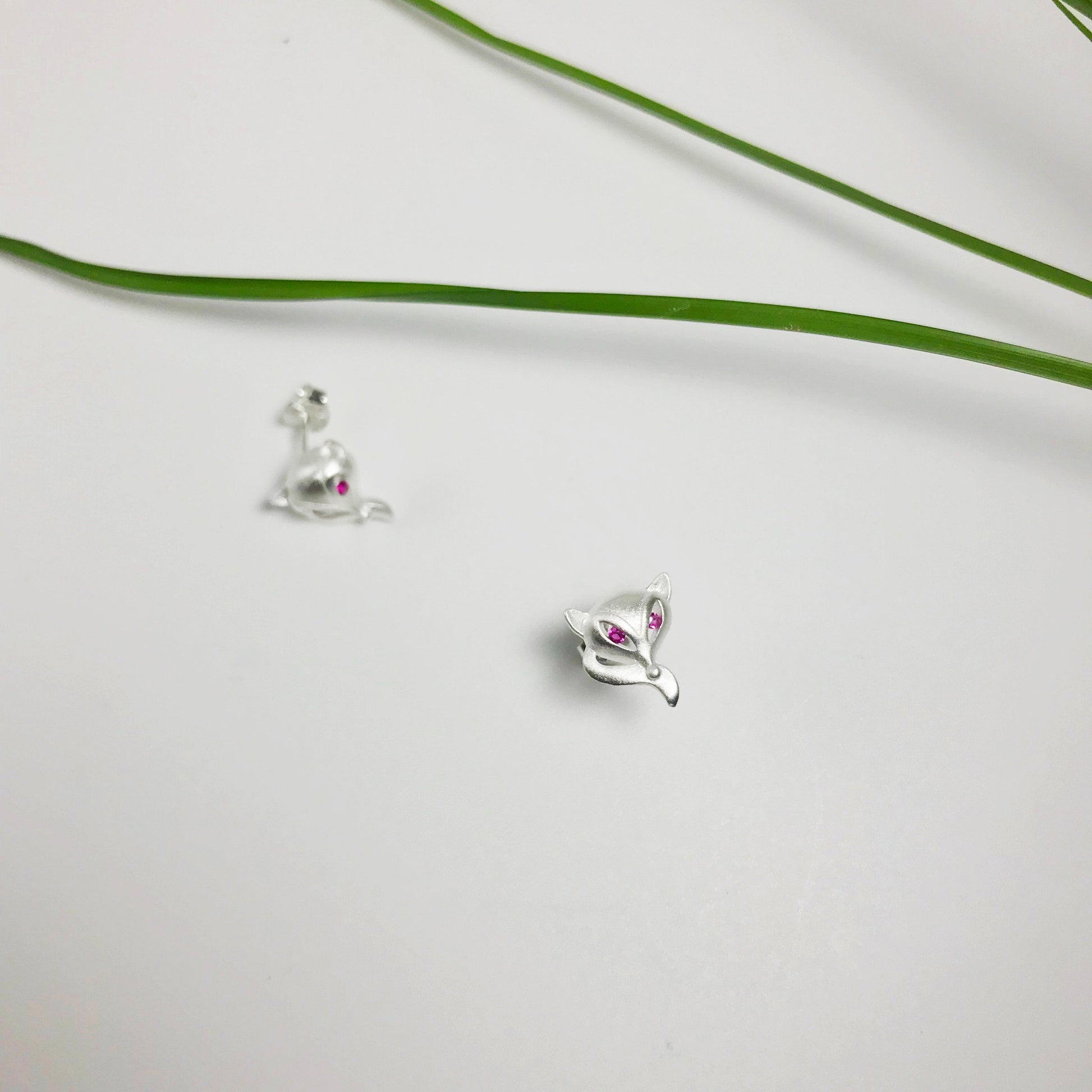 These unique sterling silver fox studs might be relatively unassuming if it weren't for those brilliant red/pink tourmaline eyes. It's certain to catch the eye and is a must have for fox lovers! Available with matching necklace (SNE1033).