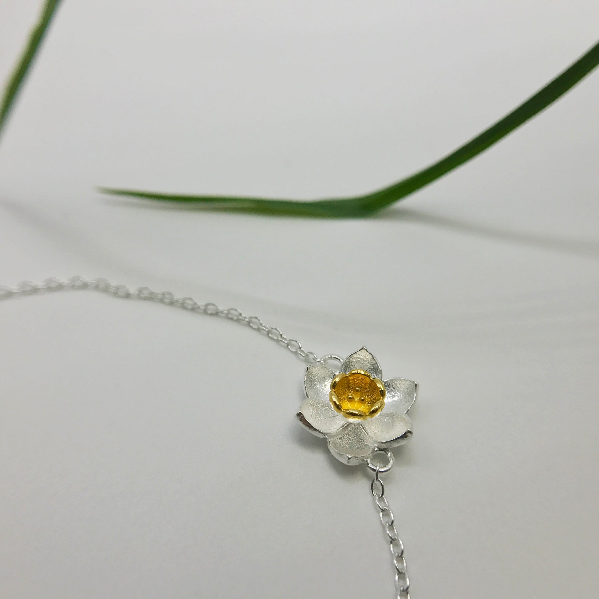 Silver Lotus Bracelet Sterling Silver Nature Jewelry